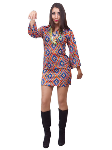 ¡Revive las vibrantes épocas de los 70s con nuestro hermoso vestido! Perfecto para fiestas temáticas y cumpleaños, serás la más hermosa de todas. Disponible en todas las tallas, desde infantil hasta adulta. ¡Sé la sensación en cualquier ocasión con este colorido y divertido vestido!