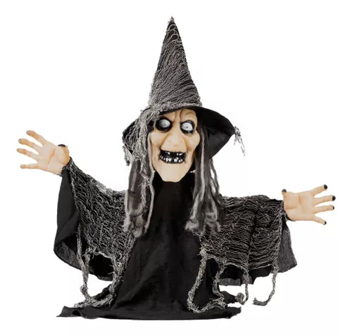 ¡Lúcete con la Animatronix Bruja Antigua! Este accesorio de 100x18x60 cm será la envidia de la calle. Cuenta con sensor de movimiento, sonido y luz, ¡para asustar a todos! ¡Corre por el tuyo ahora!