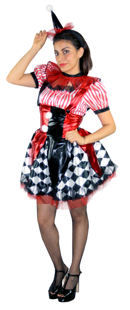 Este traje maravilloso resalta con el sol, te asegura destacar en cualquier evento. Consta de un vestido de color negro, rojo y partes blancas. ¡No esperes más, corre por el tuyo antes de que se agoten!