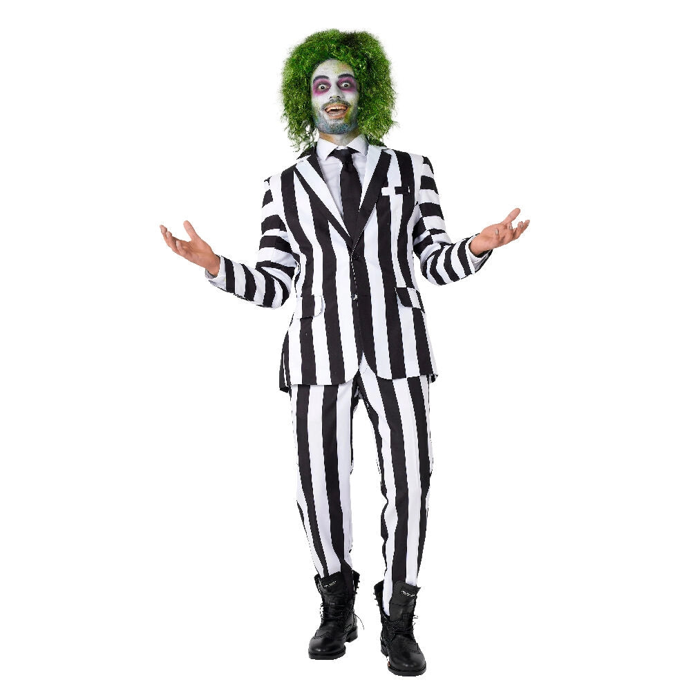 ¡Sé el alma de la fiesta con este traje completo de Beetlejuice! Consta de pantalón, saco, camisa y corbata, obtendrás un look auténtico y perfecto para esta temporada de Halloween. ¡Aprovecha la oportunidad de ser el mejor con este divertido traje!