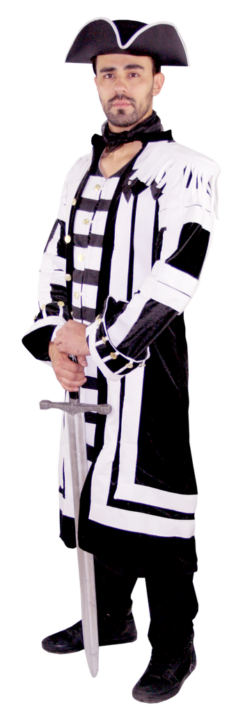 Experimenta la vida de un pirata con el conjunto Capitan Salazar. Este conjunto negro y blanco incluye pantalón, gabardina y casaca, para un estilo completo y auténtico. Conviértete en un verdadero Capitán de los siete mares con este conjunto de alta calidad. ¡Hazte con él ahora!