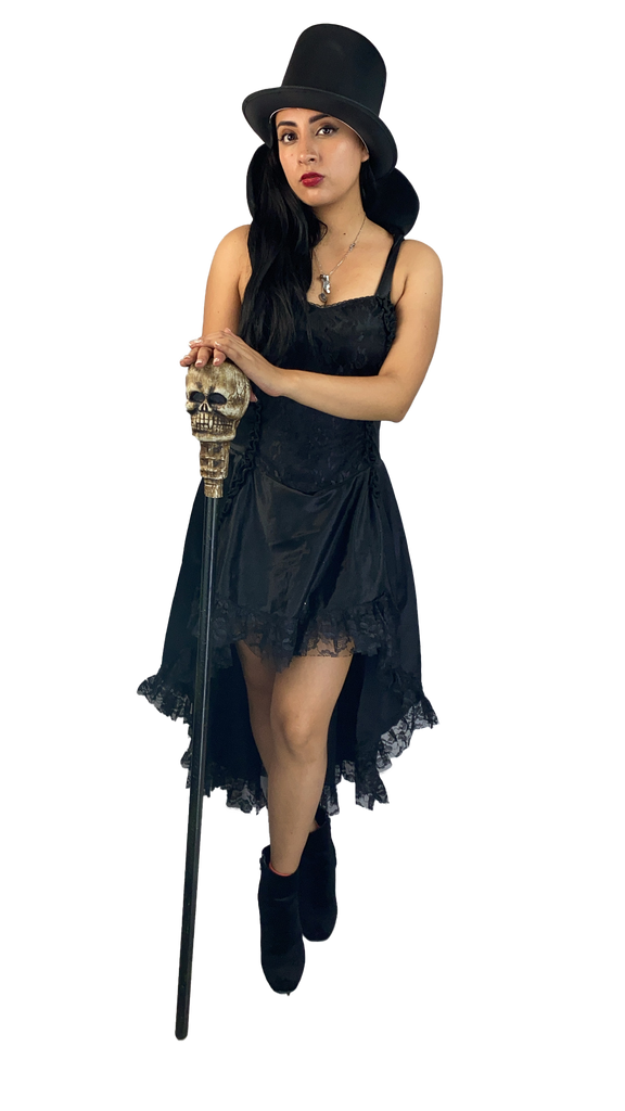 ¡Transforma tu disfraz de Halloween con Catrina Oveja Negra! El vestido negro en forma de cola de pato con acabado corseé hace que seas la más bella de la fiesta. No esperes más, ¡corre antes de que se agoten!