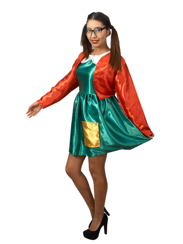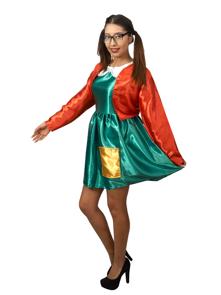 ¡No hay outfit más hot que el Chili Chili! Perfecto para cualquier evento, este atuendo te hará ser la envidia de todos. Disponible en todas las tallas, desde infantil hasta adulta, incluye vestido, short blanco y suéter. ¡Corre y consigue el tuyo ya!