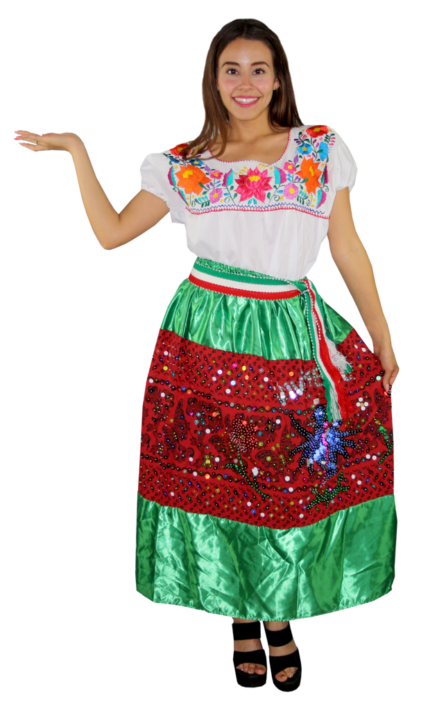 La China Poblana es un vestido típico del estado de Puebla que consta de una camisa, falda y fajilla clásica. Confeccionado con materiales de alta calidad, este vestido se caracteriza por su elegancia y tradición. Perfecto para resaltar tu cultura en cualquier ocasión. ¡Obtén el tuyo hoy mismo!