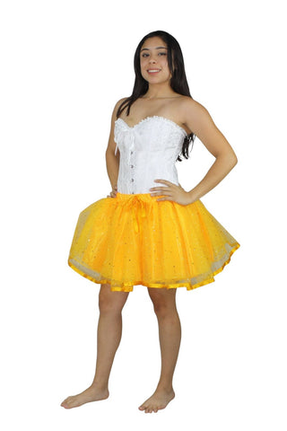 Descubre la combinación perfecta entre elegancia y diversión con este corset blanco y tutú amarillo. Su diseño coqueto realza tu figura, mientras que el vibrante tutú añade un toque de color y frescura a tu look. Ideal para destacar en cualquier ocasión especial o fiesta temática, este conjunto te asegura un estilo único y lleno de personalidad. Atrévete a lucir sensacional y captar todas las miradas.