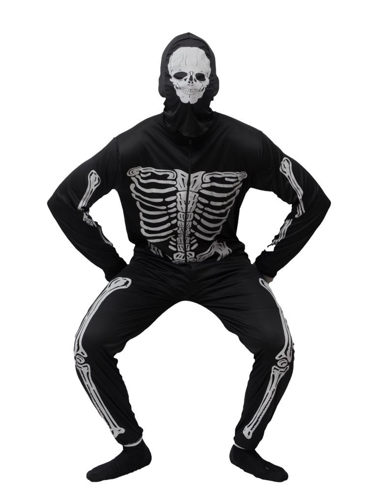 El esqueleto clásico es el conjunto perfecto para tu disfraz de Halloween. Incluye, mameluco, guantes, y máscara, todo con detalles realistas para un look espeluznante. ¡Conviértete en un experto del terror con este conjunto completo y auténtico!