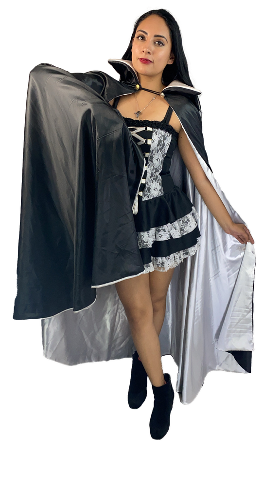 ¡Deja a todos con la boca abierta con el traje de Fantasma Blanco! Con su hermoso vestido de encaje y capa reversible, lucirás espectacular y robarás miradas y corazones. Perfecto para Halloween o Día de Muertos, acompaña tu estilo con este toque mexicano.