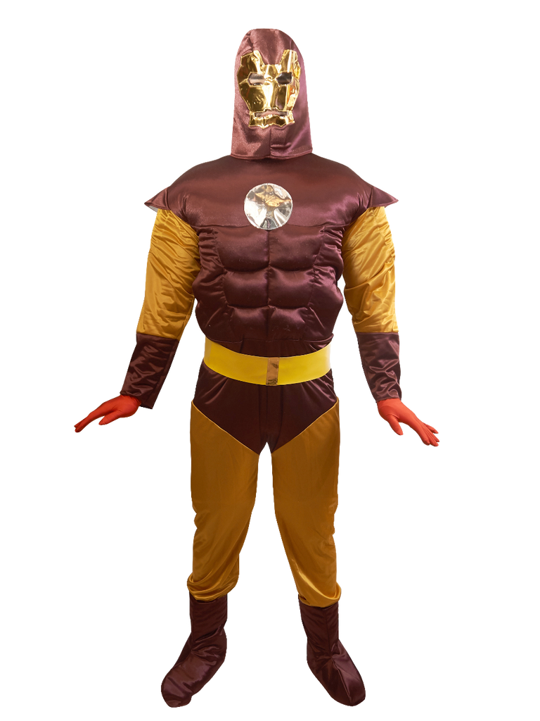 ¡Hazte notar con nuestro clásico traje de Hombre de Acero! Confeccionado para ser el centro de atención, te sentirás cómodo y seguro en cualquier ocasión. Disponible en todas las tallas, incluyendo infantil y adulta, el atuendo consta de mameluco completo, cinturón, cubrebotas y capucha.