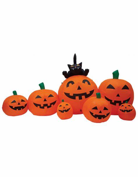 ¡Con el Inflable Familia Calabaza, serás la envidia de la calle! ¡Sus detalladas calabazas harán que te pregunten dónde las conseguiste! Mide 2.40m e incluye un ventilador y luz LED. ¡Haz que tu decoración de Halloween sea la más original y divertida!