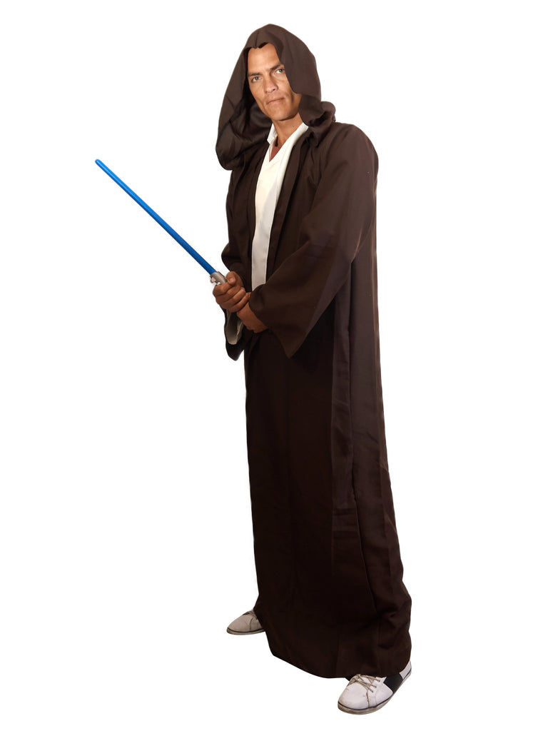 Desata tu fuerza interior con nuestro disfraz de Jedi. Incluye un saco largo, manga larga, camisa blanca y cinturón para un look galáctico auténtico. ¡Disponible en tallas infantiles y adultas para que todos puedan convertirse en los guerreros más poderosos de la galaxia!