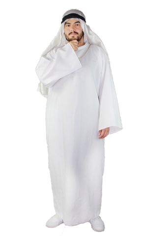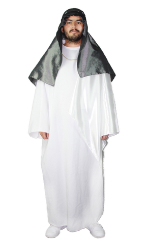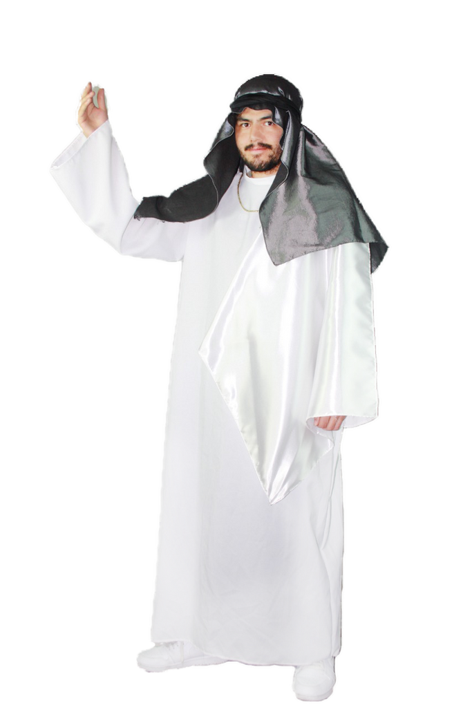 El Jeque árabe es un traje típico usado en la cultura árabe. Confeccionado con telas y bordados de alta calidad, este traje es una representación de la elegancia y la tradición. A través de su diseño único, el Jeque árabe evoca la belleza y la riqueza de la cultura árabe.