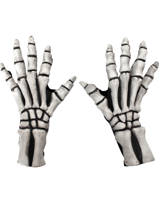 Complementa tu disfraz de esqueleto para Halloween con estos guantes de látex unitalla que llegan al antebrazo de color blanco y hueso.