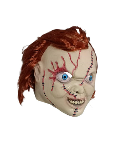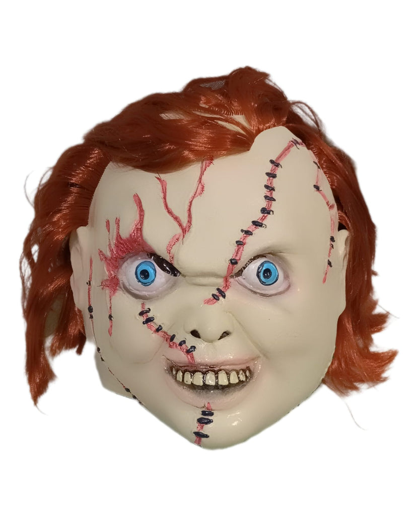 ¡Con Mascara Muñeco Asesino, serás el más aterrador de la noche! Esta mascara de látex de alta calidad y pelo sintético, te dará un efecto realista y un acabado perfecto para tu disfraz. ¡Prepárate para asustar a todos con diversión y estilo!