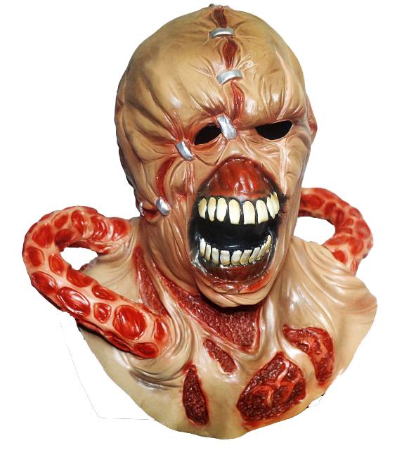 ¡Con la máscara de látex de alta calidad Mascara Némesis Deluxe, serás el zombie más temido! Incluye mini pechera para un realismo aún mayor. Perfecta para fans de Resident Evil que no se toman a sí mismos muy en serio. ¡Conviértete en la encarnación del mal con esta máscara!