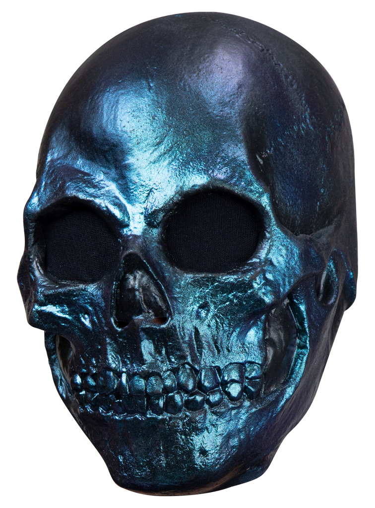 ¡Demuestra tu creatividad con nuestra mascara de calavera metálica en color azul! Perfecta para fiestas o eventos, esta mascara lista para usar está hecha de látex y se adapta a cualquier forma de rostro. ¡Conviértete en una auténtica calavera mexicana y prepárate para mover el esqueleto!