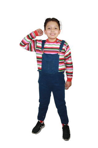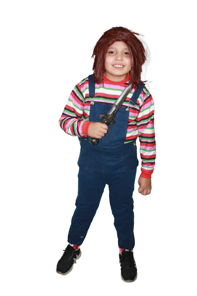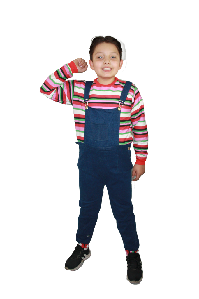 Con Muñeco Malo, saca tu lado diabólico y sé el más aterrador con este atuendo completo de overol y camisa de rayas en todas las tallas. ¡Corre y asusta a todos, incluso roba algunas almas (bueno, no literalmente)! Disponible en tallas infantiles y de adulto.