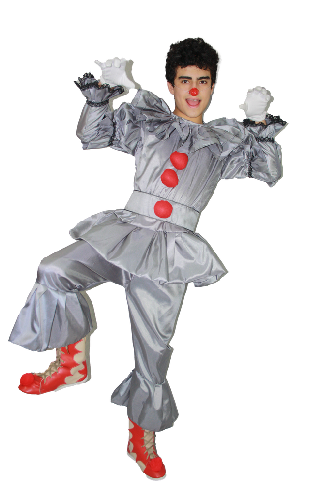 ¡Prepárate para aterrorizar a todos en la fiesta con Payaso Terror! Con pantalón pescador, blusón gris y fajilla, roba almas con tus sustos. ¡Corre y consigue el tuyo ahora! ¡Que se agotan!