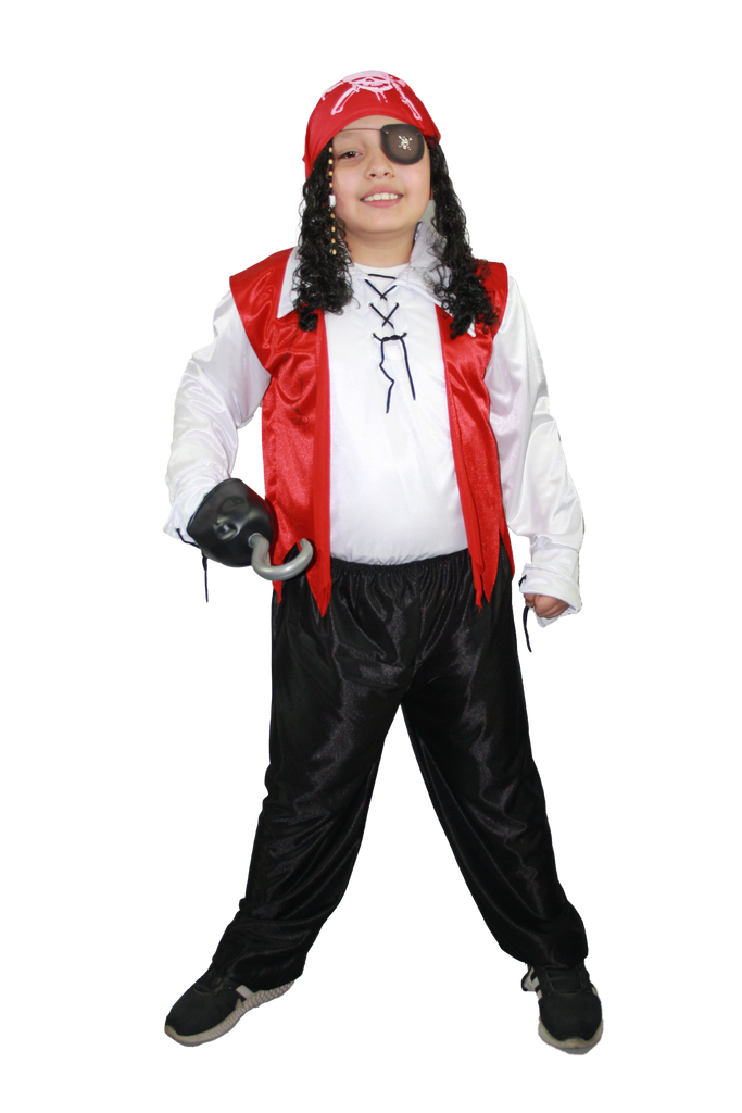 ¡Con el Pirata Clásico, serás el rey de los mares! Este conjunto clásico incluye pantalón negro, camisa blanca y chaleco rojo para un look único. Disponible en tallas desde infantil hasta adulta, ¡corre antes de que se agoten! ¡Arrr!