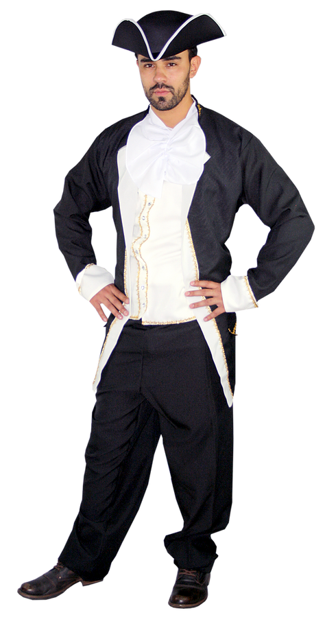 ¡Únete a la tripulación como el pirata más guapo con James Norrington! Consta de pantalón negro, camisa con escarola y saco, ¡disponible en tallas infantiles y adultas! ¡Corre por el tuyo y conquista los mares con estilo!