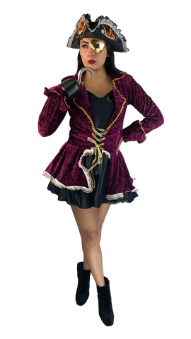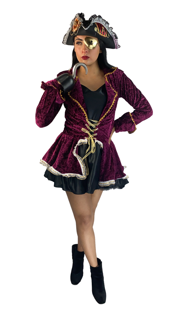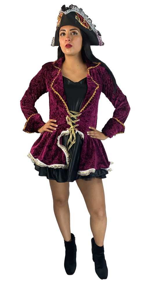 ¡Sé la más deseada con Pirata Teach! Este conjunto incluye un vestido negro y un saco de terciopelo en todas las tallas, ¡desde infantil hasta adulta! No esperes más, ¡corre a por el tuyo antes de que se agoten! Hecho con materiales finos de alta calidad, ¡te brindará comodidad y estilo!