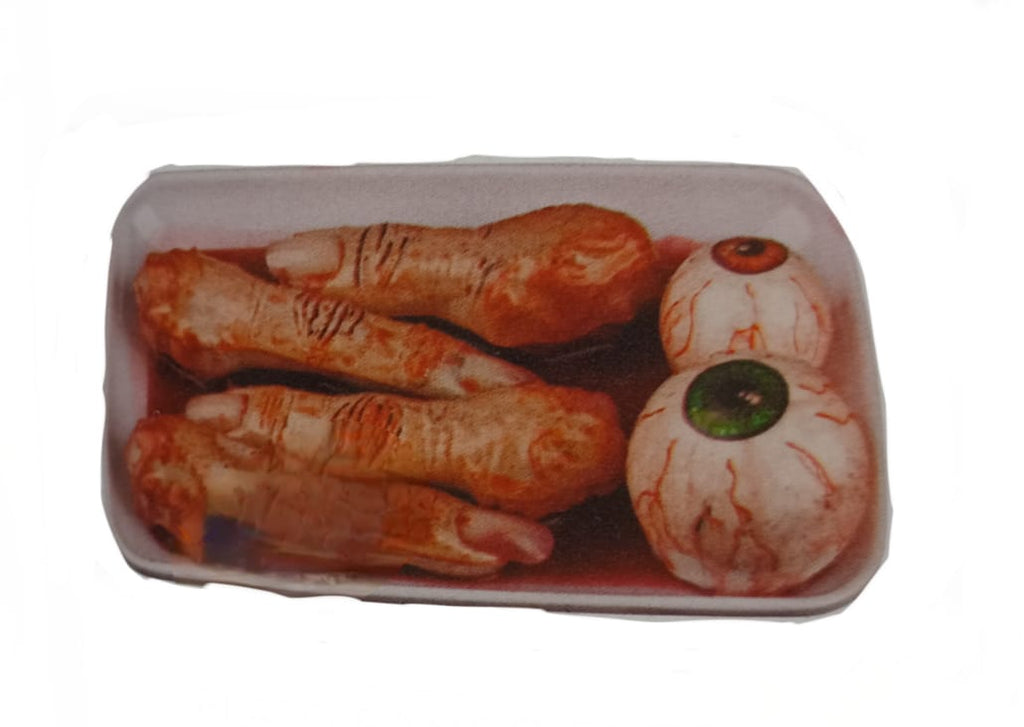 Prepárate para una noche de Halloween terrorífica con nuestro Plato Sangriento. Hecho de partes de cuerpo (literalmente), este plato te hará temblar de miedo mientras disfrutas de tus comidas. ¡No esperes más y añádelo a tu colección de accesorios aterradores!
