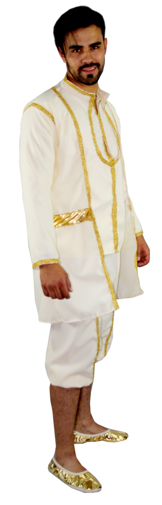 Sé el más cotizado con Príncipe Árabe. El conjunto incluye pantalón, camisa y saco con detalles dorados. Roba miradas y corazones, ¡encuentra a tu princesa! ¡Corre por el tuyo ya!
