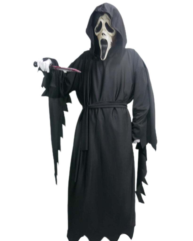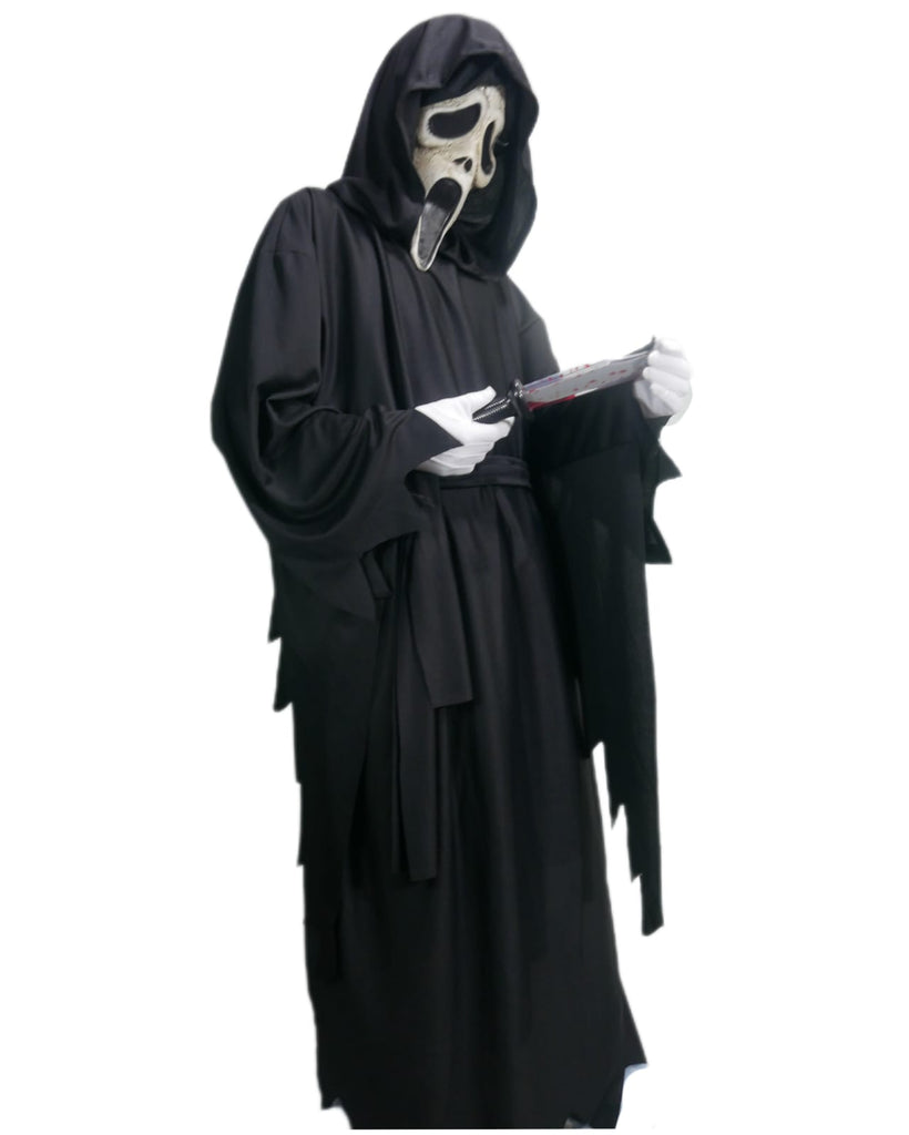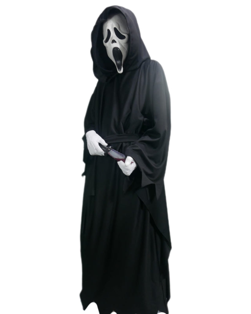 ¡La túnica negra más legendaria ha regresado! Scream te ofrece una larga manga y una capucha para hacer que tus noches de Halloween sean aún más terroríficas. ¡Conviértete en uno de los asesinos más buscados y siembra el terror en todos! Diponible en todas las tallas desde la infantil hasta la adulta