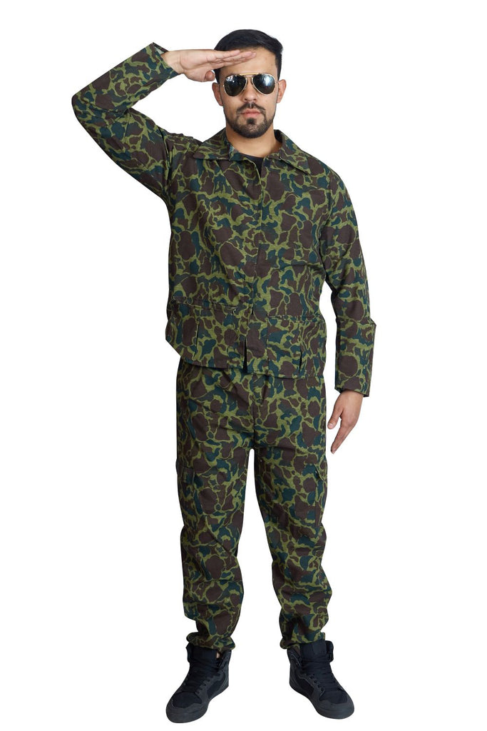 ¡Conquista la batalla de estilo con el traje Soldado Hombre! Diseñado para ganar la guerra del buen vestir, consta de pantalón y camisa manga larga, ¡su material de alta calidad te dará comodidad y te mantendrá en acción para hacer brillar las pistas o salvar a la humanidad!