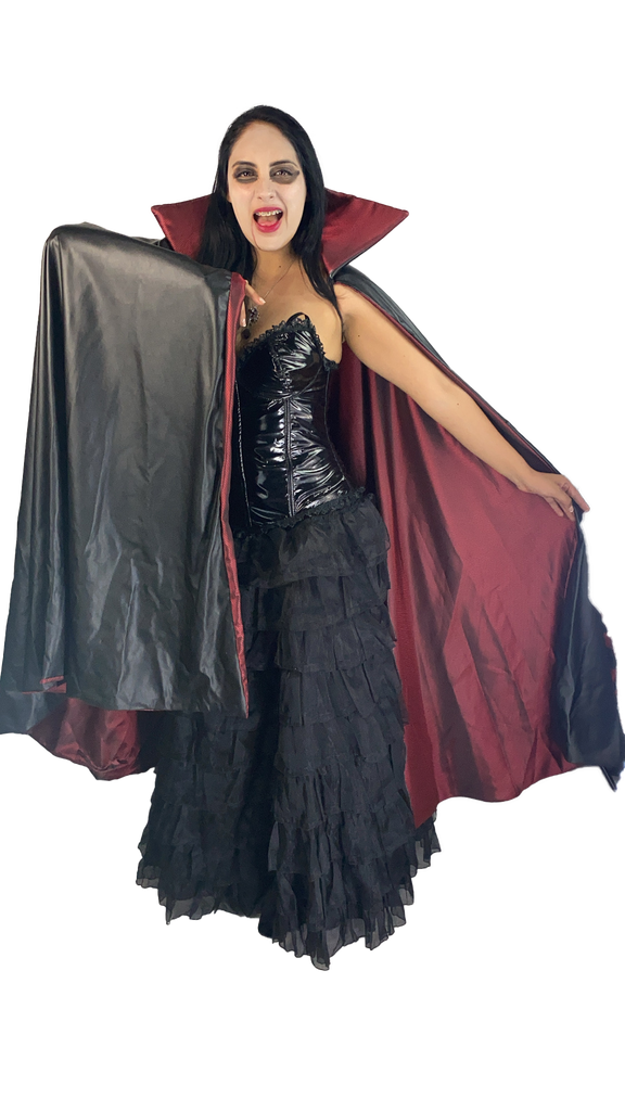 ¡No busques más! La Vampira Charol tiene todo lo que necesitas: falda de olanes para un toque femenino, corseé estaple para levantar y moldear tu figura y tallas disponibles solo para adultos. ¡Consigue un look hermoso, pero con seguridad!